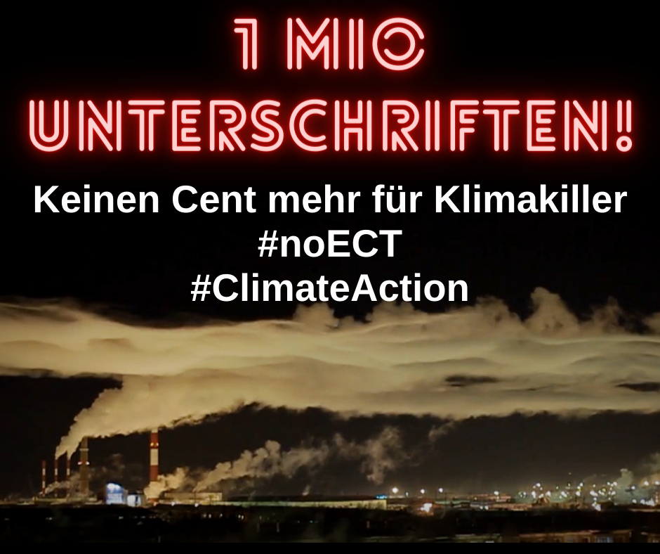 Innerhalb von 14 Tagen sammelte die Petition “Energiecharta-Vertrag stoppen!” eine Million Unterschriften. Die von zahlreichen zivilgesellschaftlichen Organisationen in ganz Europa getragene Petition setzt somit ein starkes Zeichen für die Energiewende und das Ende der fossilen Energien. Damit unterstreicht sie den dringenden Handlungsbedarf, dem Damoklesschwert, das über einer ambitionierter Klimapolitik hängt, zu entkommen. Denn der Vertrag ermöglicht Energieunternehmen mit Klagen vor nicht-staatlichen Schiedsgerichten gegen die Energiewende vorzugehen.