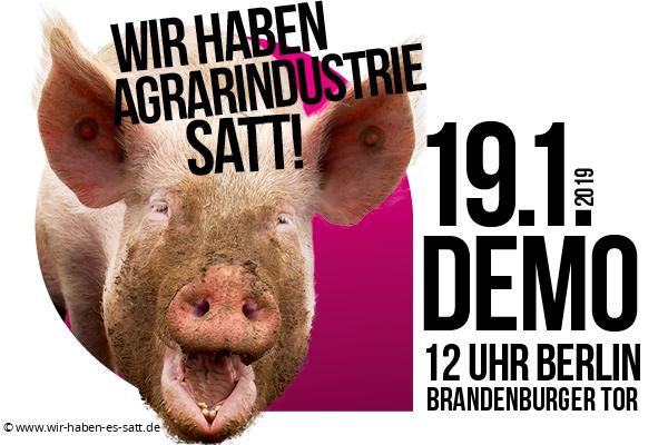 Das Bündnis „Wir haben es satt!“, dem auch die NaturFreunde Deutschlands angehören, fordert unter dem Motto "Der Agrarindustrie den Geldhahn abdrehen!" eine bäuerlich-ökologischere Landwirtschaft, artgerechte Tierhaltung, Klimagerechtigkeit und Zugang zu gesundem Essen für alle.