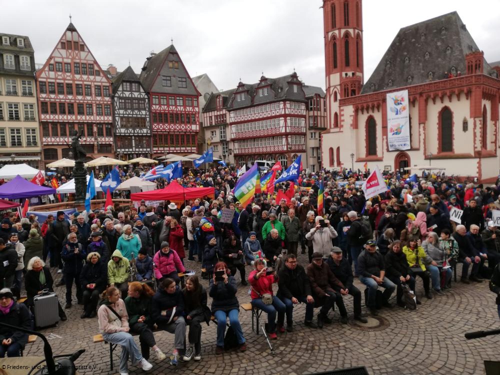 Es freut mich, dass ihr alle zum Ostermarsch auf den Frankfurter Römerberg gekommen seid. Noch mehr haben gestern Abend die Berichte gegeben, dass es in Israel machtvolle Demonstrationen gegeben hat: gegen das Regime von Netanjahu und für Neuwahlen, für die Freilassung der Geiseln und eine Friedenslösung in Gaza.