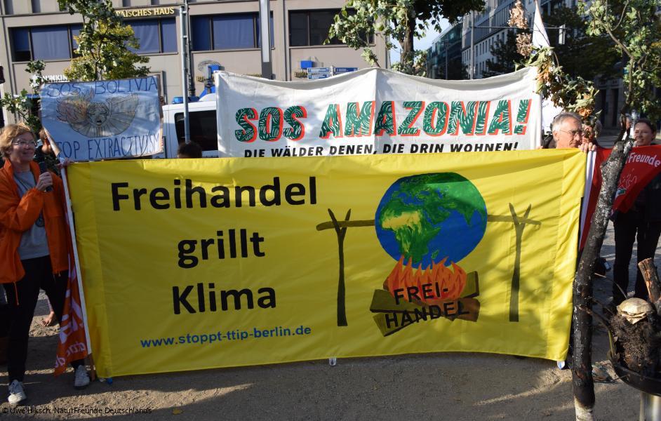 Gemeinsam mit brasilianischen Menschenrechts- und Umweltaktivist*innen fordern wir von der Bundesregierung den Stopp des geplanten EU-Mercosur-Abkommens und eine gerechte, demokratische und nachhaltige Handelspolitik! Kommt zahlreich!