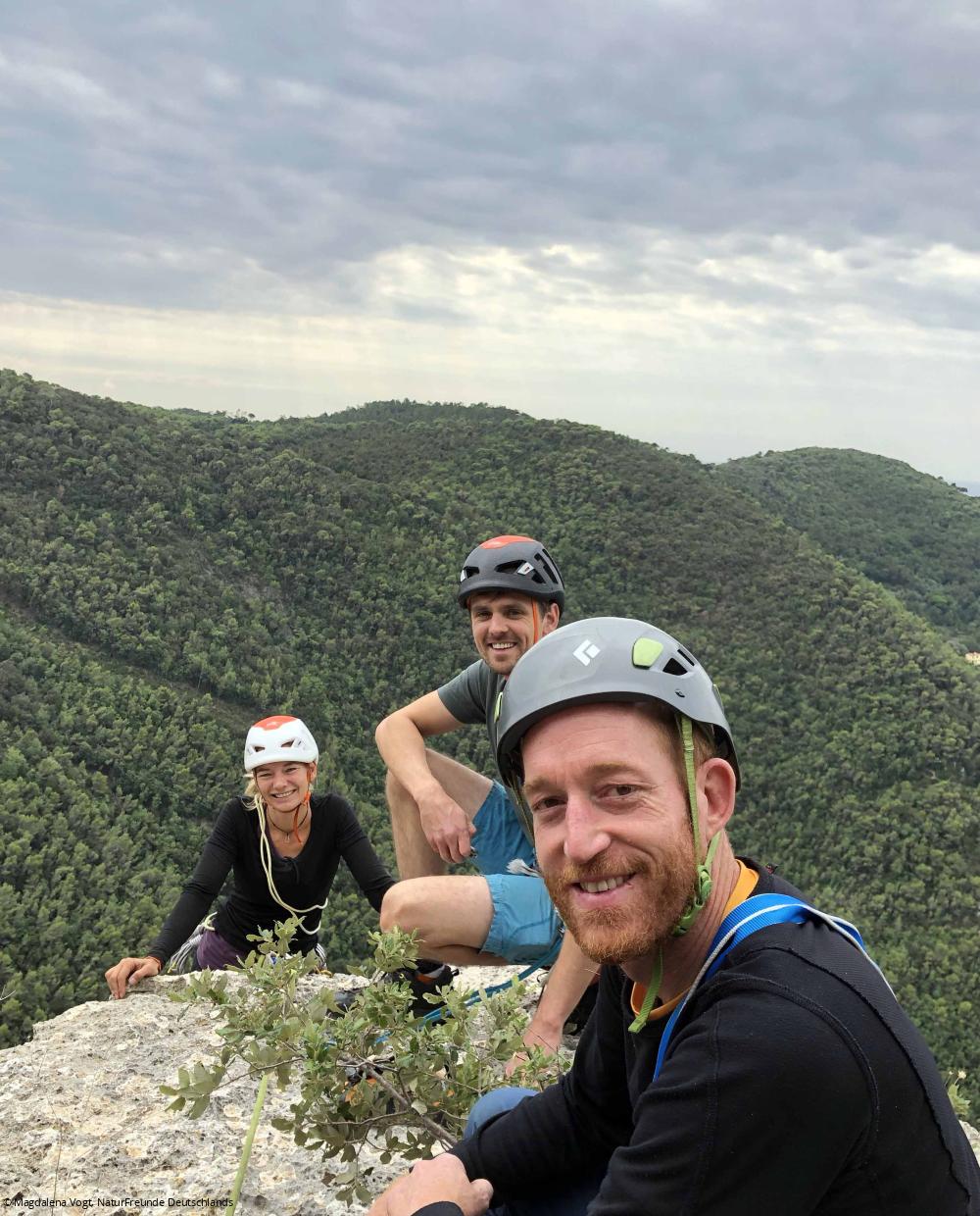 Nach ca. 4,5 h waren wir alle durch die teilweise recht anspruchsvollen neun Seillängen durchgestiegen und trafen am Ausstieg der Routen wieder aufeinander. Nach gegenseitigem Abklatschen und einer kurzen Stärkung ging es von dort zu Fuß über den Wanderweg zurück zu den Autos.